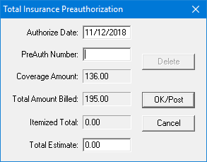 The Total Insurance Payment or Total Insurance Preauthorization dialog box appears.