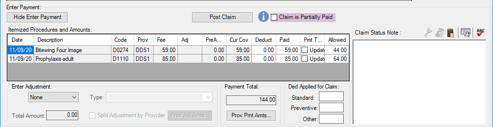 Claim is Partially Paid - If selected, the claim is flagged as partially paid and will not have a status of "Received." The flag can be changed when an insurance payment is added or edited. You can also change the flag in the Insurance Claim Status dialog box.