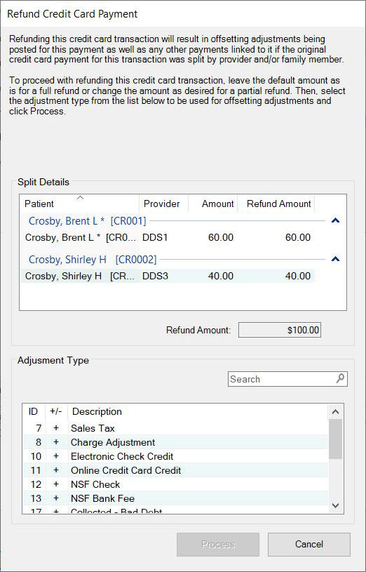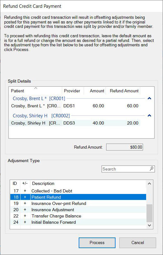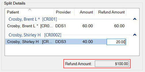 Important: You must refund the full amount of the original payment with this method. If you split the original payment by provider or patient, the full amount is refunded, not the individual split payment. You do not need the patient's credit card to make a refund.