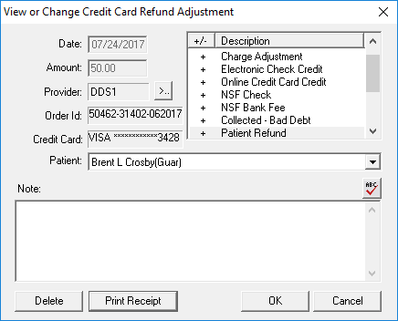 The View or Change Credit Card Refund Adjustment dialog box appears.