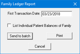 1.   With a patient selected in the Ledger, click Print, and then click Family Ledger.