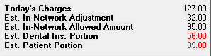Est. Dental Ins. Portion - The estimated amount that dental insurance will pay according to the coverage set up in the Family File.