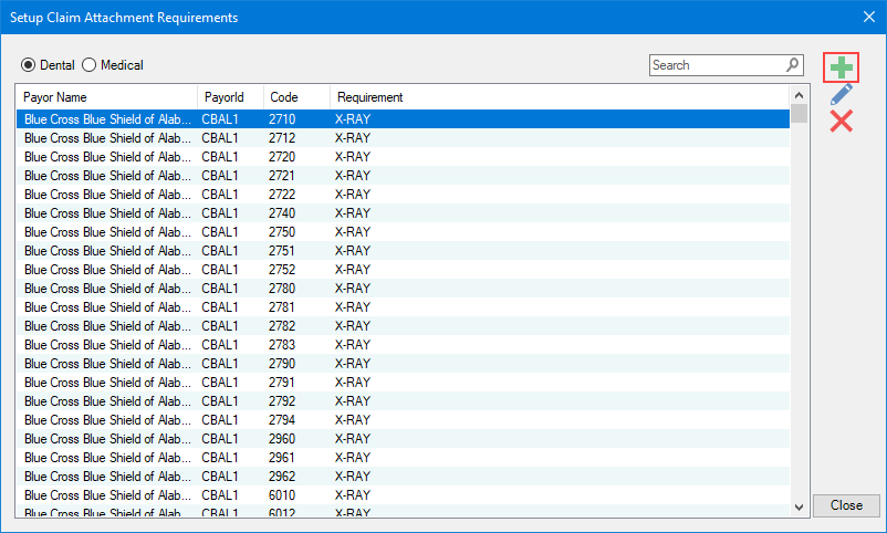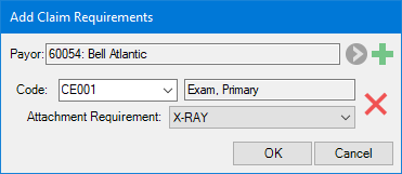 The Add Claim Requirements dialog box reappears with the selected payor, code, and required attachment.