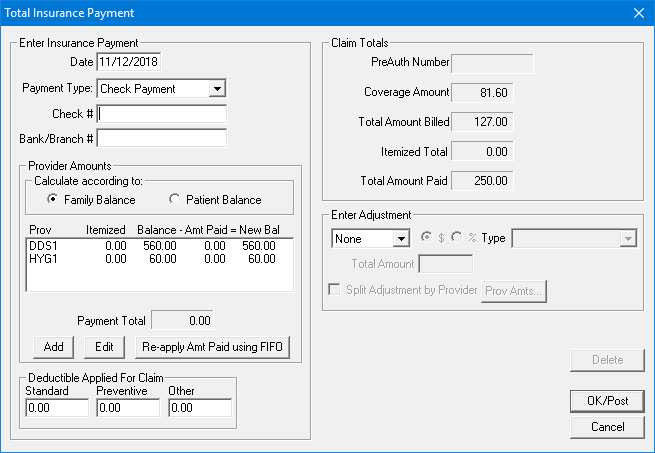 Occasionally, insurance carriers will send partial payment for an insurance claim while waiting for more information on certain procedures. In this situation, you can either split the claim or post another payment to the claim. You should post an additional payment if: