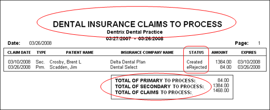 The Dental Insurance Claims to Process report prints.