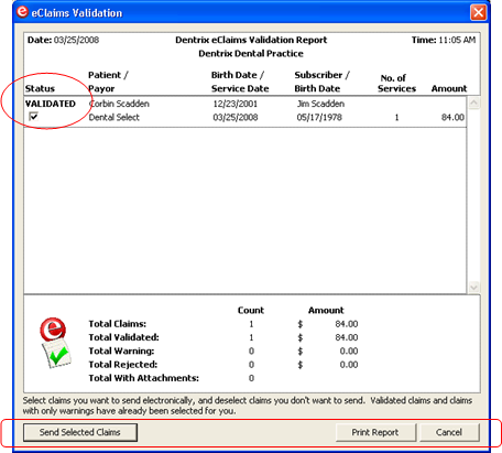 The eClaims Validation dialog box appears.