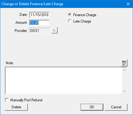 1.   With a patient selected in the Ledger, double-click the finance charge.