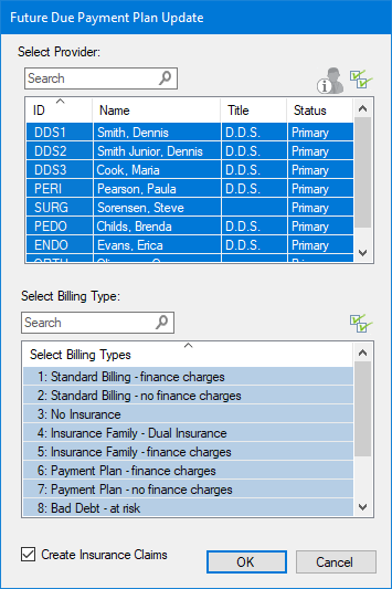 You can automatically post charges due on all accounts that have a future due payment plan. We recommend that you do this monthly; however, you should only do this if you have set up payment plans for accounts that must be automatically charged an agreed-upon monthly amount—most commonly done with orthodontic accounts.