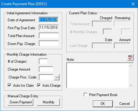 Note: If you clear the Auto Charge check box, charges are not posted to the account when Future Due Payment Plans are updated each month.