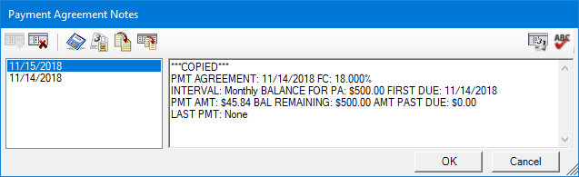 2. To note the terms of the payment agreement, click Copy Agreement to Note.