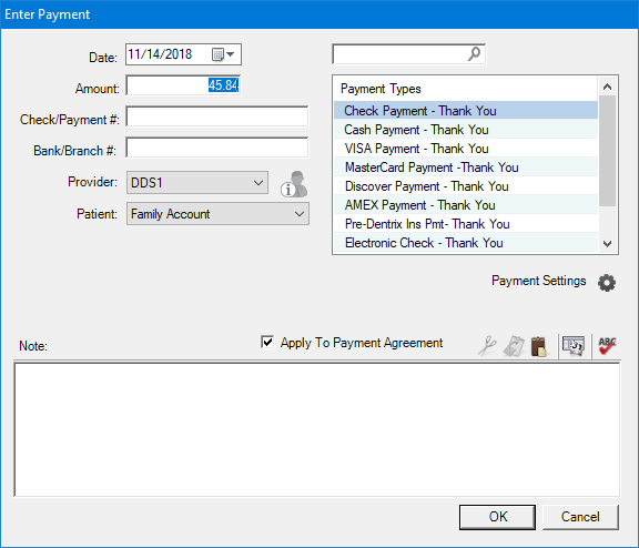 The Payment Agreement Manager shows you every payment agreement your office has entered into. From the Payment Agreement Manager, you can enter payments without going through the Ledger, and you can sort and filter payment agreements.