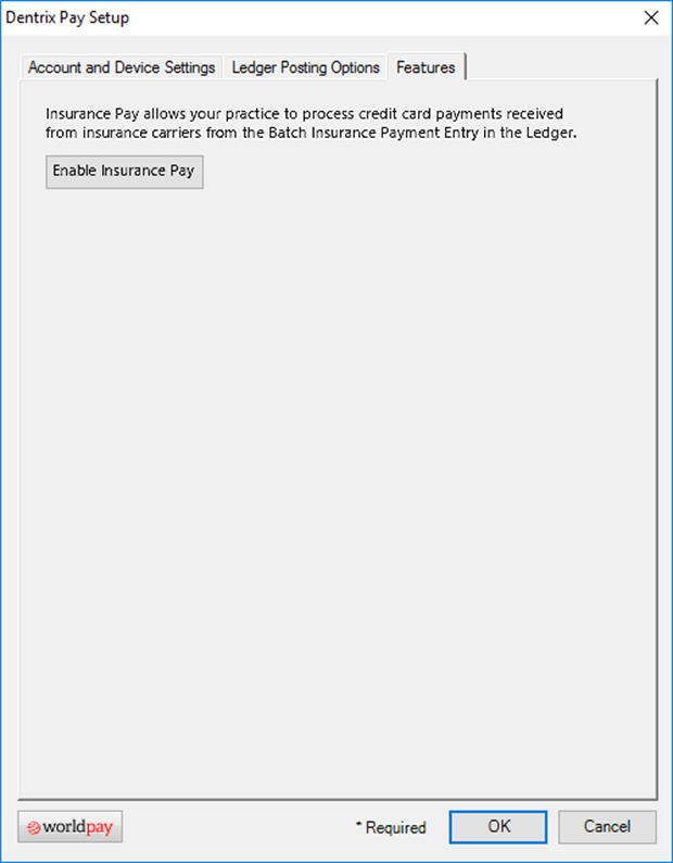 2. Click the Features tab, and then click Enable Insurance Pay.
