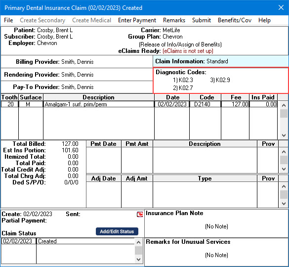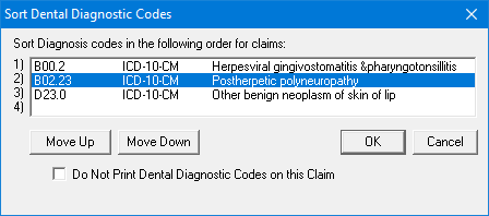 4. If you do not want the codes to print on the claim, select Do Not Print Dental Diagnostic Codes on this Claim.