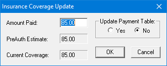 3. To update the itemized payment or estimate, type an amount in the Amount Paid field, select whether or not you want to update the payment table, and click OK.