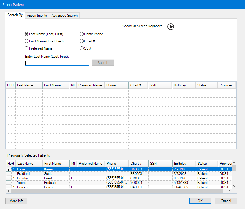 Depending on your billing cycles, the arrival of the mail often generates a number of payments that you must enter. With the Dentrix Batch Payment Entry feature, you can group payments together and enter them as a single batch from one dialog box, saving you valuable time.