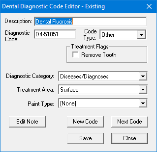 The Dental Diagnostic Code Editor - Existing dialog box appears.