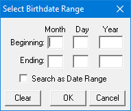 b. In the Beginning and Ending fields, type the birthdate range, and then click OK twice.