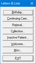 Note: Because the List Manager allows you to review the lists of patients you generate and restrict who receives letters and other correspondence, we recommend that you create your letters, cards, and labels using the List Manager.