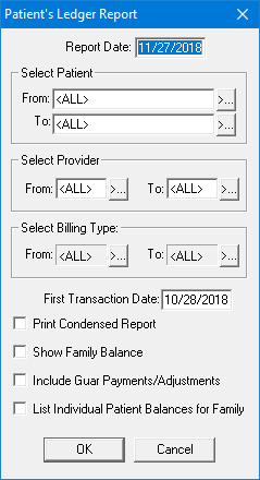 The Patient's Ledger Report dialog box appears.
