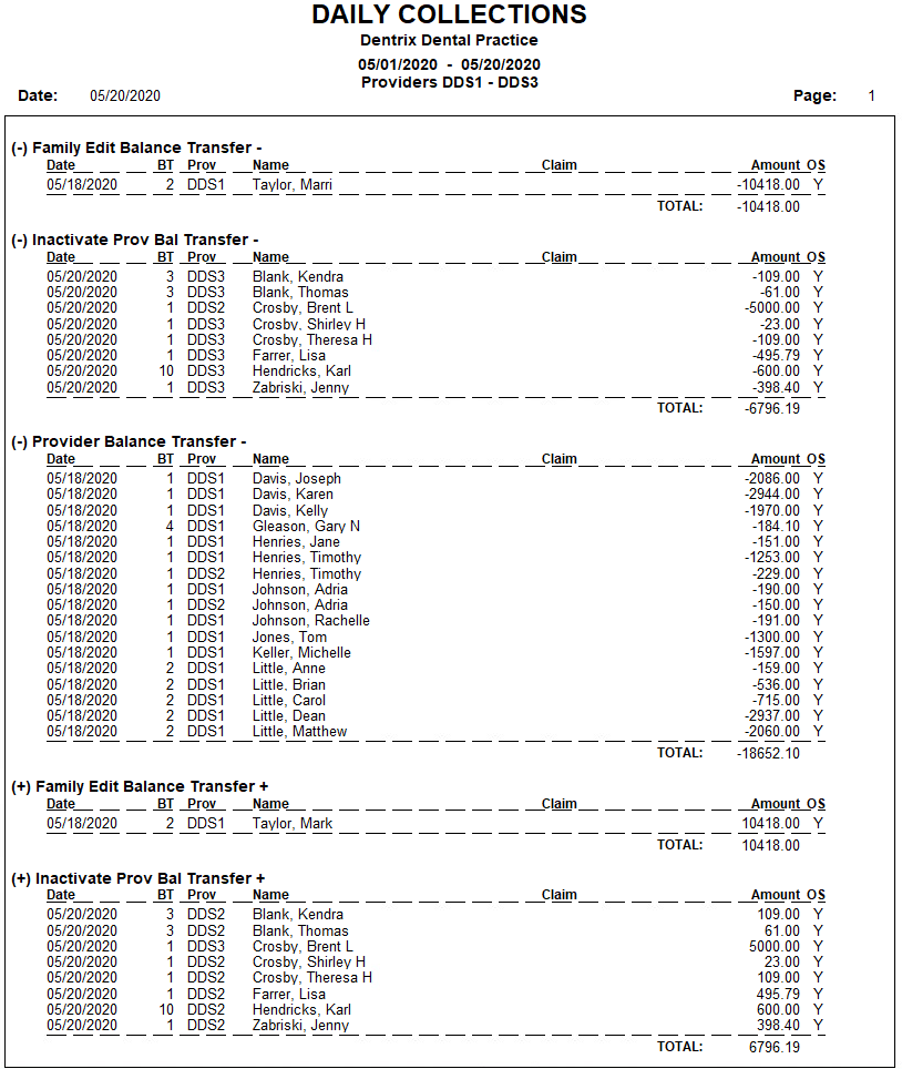 Chronological Day Sheet - Prints a day sheet, listing the transactions in the order entered. Treatment plan items entered before the current day and then set complete print before items actually entered on the current day. Chronological day sheets print faster than alphabetical day sheets because they are not sorted.