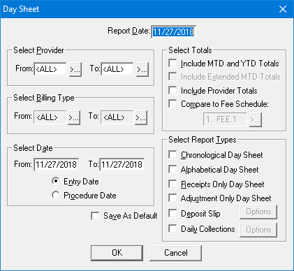 7.   Select Save As Default to save the setting changes for the next time you open the Day Sheet dialog box.