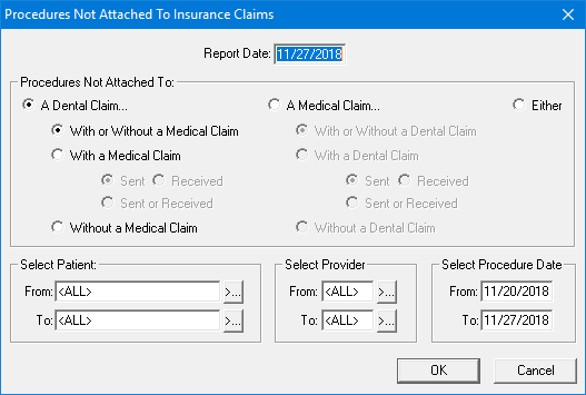 · A Medical Claim - To include procedures that are not attached to a medical claim, and then select from the following: