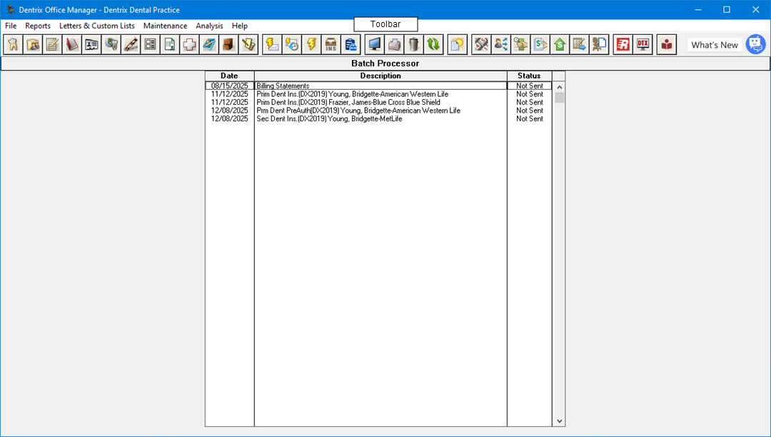 Batch insurance claims - Process a group of primary dental insurance claims in a "batch" for procedures posted within a specified date range.