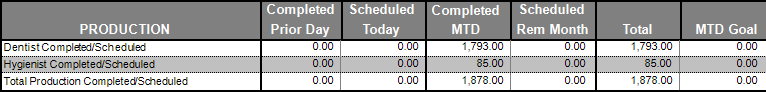 The Total Production Completed is the dollar amount of completed procedures for the practice.