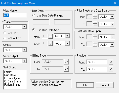 All - To view all continuing care patients regardless of their next scheduled appointment.
