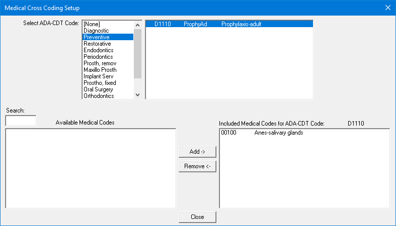 2.   From the Select ADA-CDT Code list, select the category that you set up for medical cross coding.