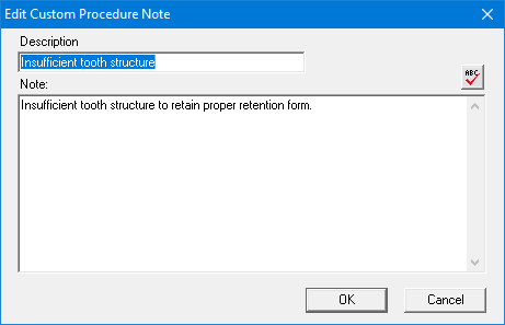 The Edit Custom Procedure Note dialog box appears.