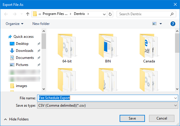 You can export fee schedules as comma delimited (csv) files to a destination that you specify. You can then open the fee schedule in Microsoft Excel or a text editor.