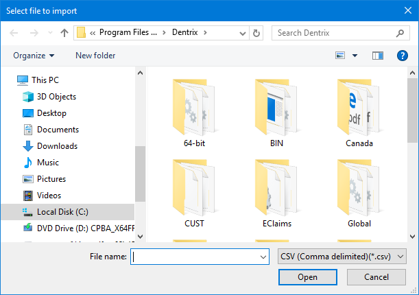 Dentrix lets you import fee schedules as comma delimited and Excel files into the database.