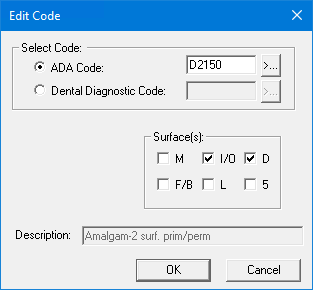 Note: Depending on the procedure code you selected, a group box appears allowing you to select the surfaces, quadrant, or sextant appropriate to the procedure code. Dentrix flags multi-codes consisting of one or more procedures that require additional treatment information, such as a tooth number, with an asterisk (*) in the Procedure Codes List. You must supply this additional information before you can post a multi-code.