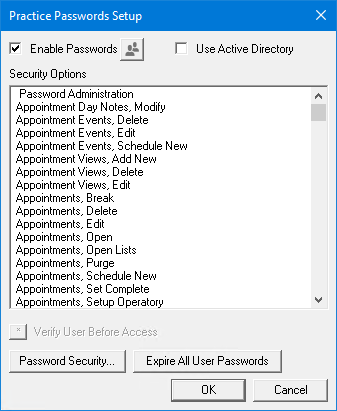 1. In the Maintenance menu in the Office Manager, point to Practice Setup > Passwords, and then click Practice Passwords Setup.