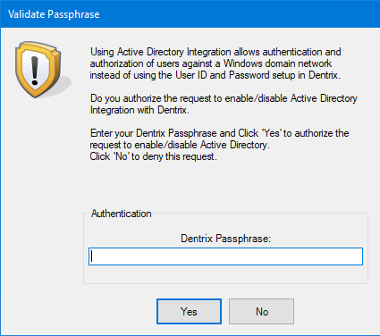 3. Type your Dentrix passphrase, and then click Yes.