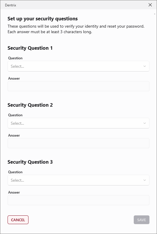 4. Repeat steps 2 and 3 for security questions 2 and 3.