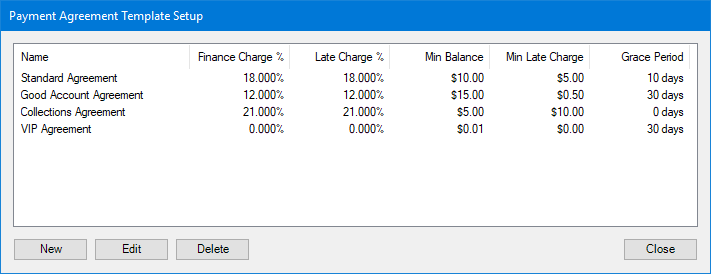 Note: The finance charge percentage is used to calculate the finance charge, and the amount is automatically calculated based on a monthly charge. For example, if you enter 18% as the annual percentage rate, a 1.5% monthly charge is assessed.