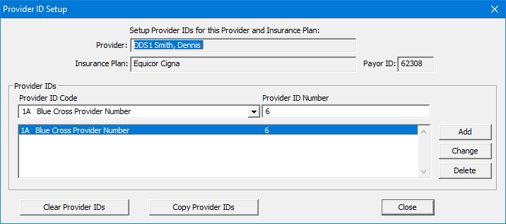 Dentrix adds the Provider ID code and number to the list for this provider and insurance company.