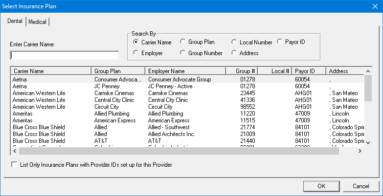 If appropriate, select List Only Insurance Plans with Provider IDs set up for this Provider.
