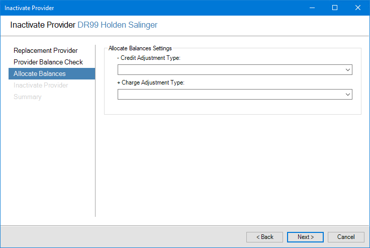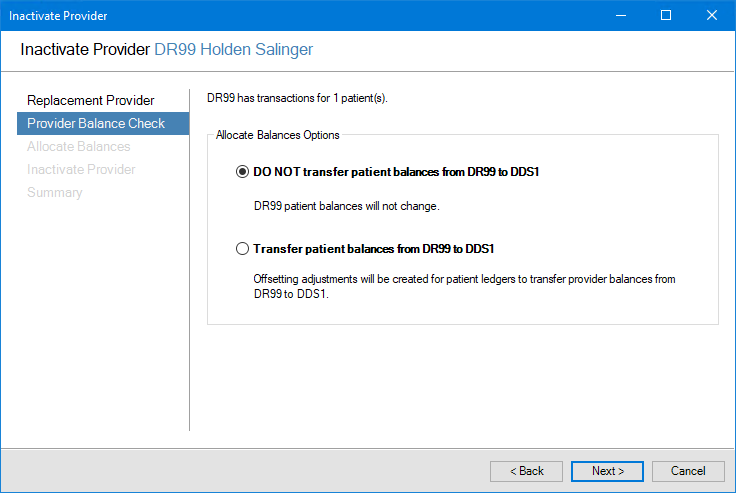 5. Select how you want to handle any balances for the provider you are inactivating, and then click Next.