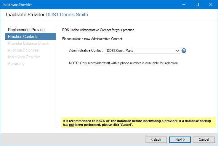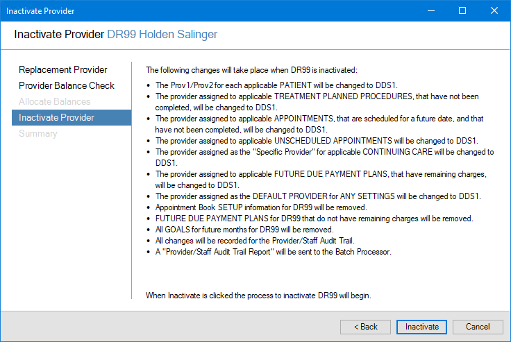 Important: We strongly recommend that you back up the Dentrix database prior to inactivating a provider.