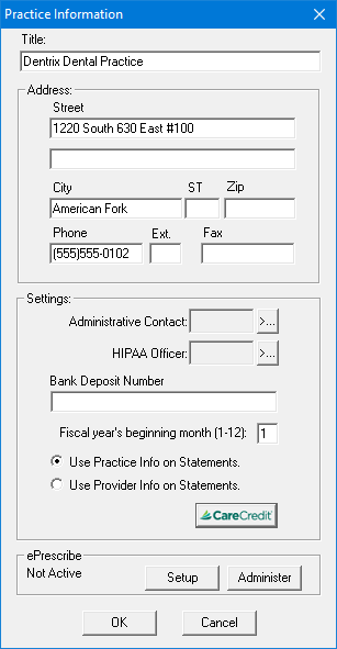 The CareCredit Practice Setup dialog box appears.
