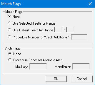 Use Default Teeth for Range - To enter a range of tooth numbers for procedures such as dentures.