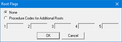 Note: If you select Procedure Codes for Additional Roots, you must fill in each of the text fields, For example, if there are only three additional procedure codes, you must repeat the procedure code entered in text field 3 in text fields 4 and 5.