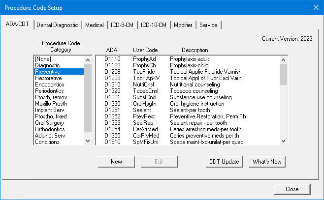 6. To complete the process for adding or editing ADA-CDT dental codes, click Adding ADA-CDT dental codes or Editing ADA-CDT dental codes, respectively.
