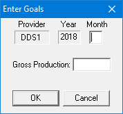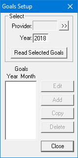 The Goals Setup dialog box appears where you can set up or edit the monthly production goals by provider.