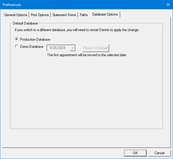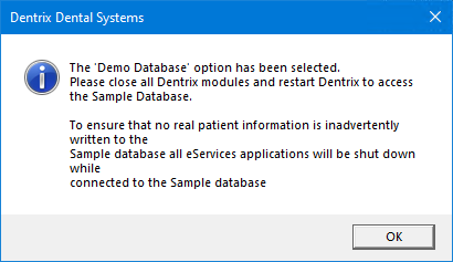The Demo or Sample database is a training tool that provides you with a method of tutoring yourself and your employees on how to use the Dentrix modules without affecting your practice's "live" database.