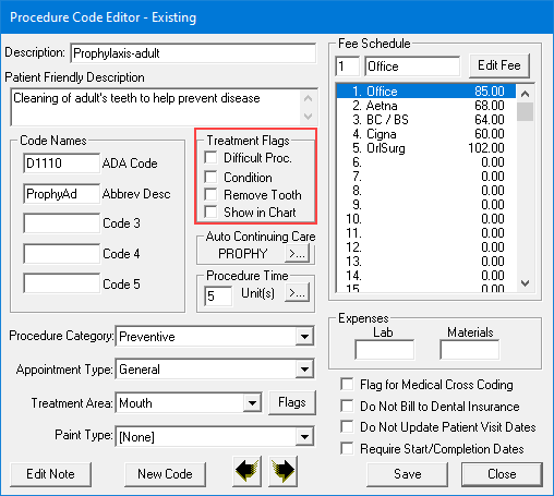 Whether you create your own procedure codes or purchase them, by default Dentrix lists every procedure code in the Procedure Codes panel of the Patient Chart. Hiding a procedure code so that the only codes that appear are those that you use most often reduces the size of the list making it easier and faster to add treatment.