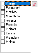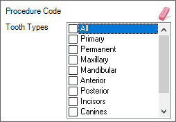· Covers Only Tooth Type – Double-click the cell, and then select the applicable tooth types from the list. To clear your selections, click the Clear button.